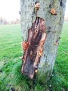 Enkele voorbeelden van bomen met secundaire aantastingen zoals fluweelpootje en oesterzwam en de mogelijke risico’s.